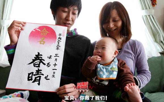 2012年3月3日,日本宫城县南三陆町,佐藤健司夫妇拿着快满一岁儿子春晴的姓名贴接受记者采访。春晴出生于去年3月11日,刚好碰到日本东北部大地震,当时正在一家护理院工作的佐藤因为要赶去医院看望初生的儿子,幸运躲过海啸,死里逃生。 (责任编辑:admin)