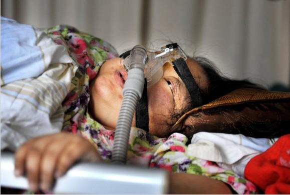 杨丽娟侧卧在病床上,鼻子里插着呼吸机。她啥也说不出来,眼泪吧嗒吧嗒地往枕头上掉。杨丽娟下身太胖,连条合适的内裤都没有,只能赤裸,上面盖条毛巾被。记者看见她的肚子鼓鼓的,身体最宽处的肚围至少有2.4米,占满了1.2米的病床。肚子上的皮肤特别硬,紧绷绷的,一点弹性都没有。 (责任编辑:admin)